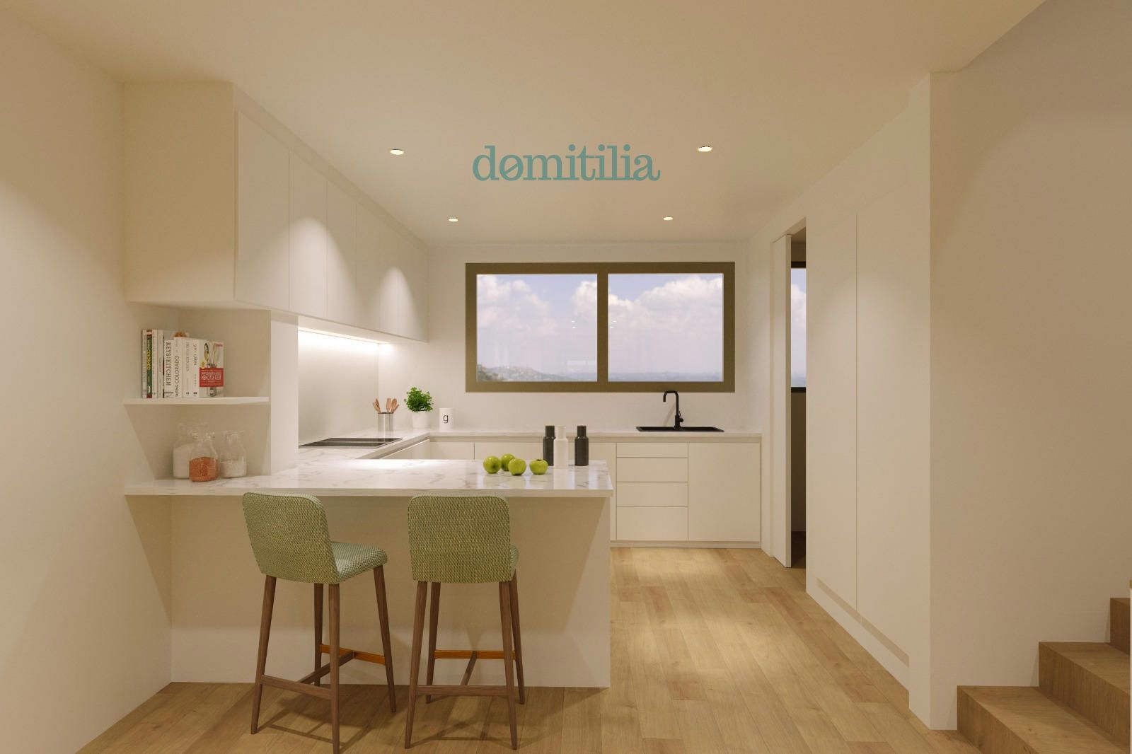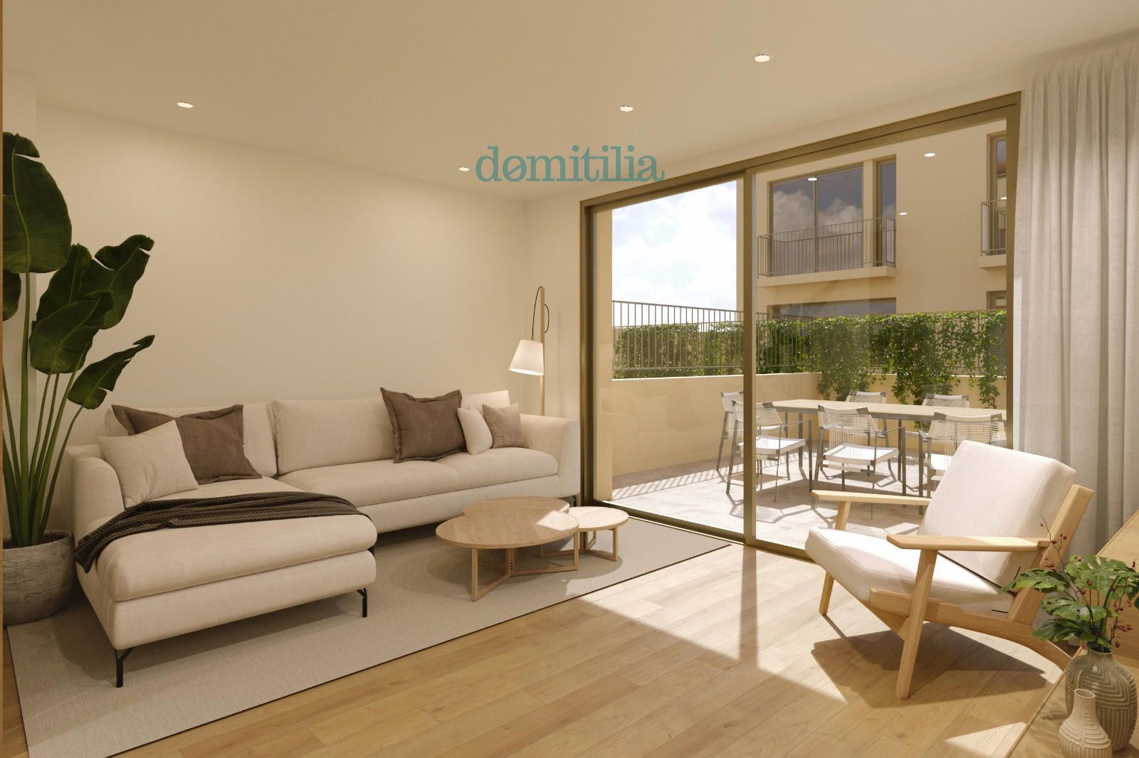 Planta primera, sala d'estar - menjador molt lluminós amb cuina oberta, servei i una terrassa.